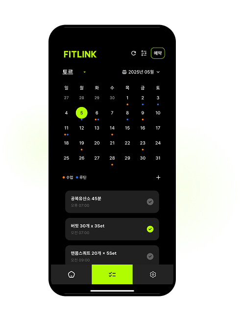 직관적인 예약 시스템을 통한 수업 예약 및 관리 회원별 수업 일정 알림 기능 및 개인 휴무 일정 관리